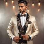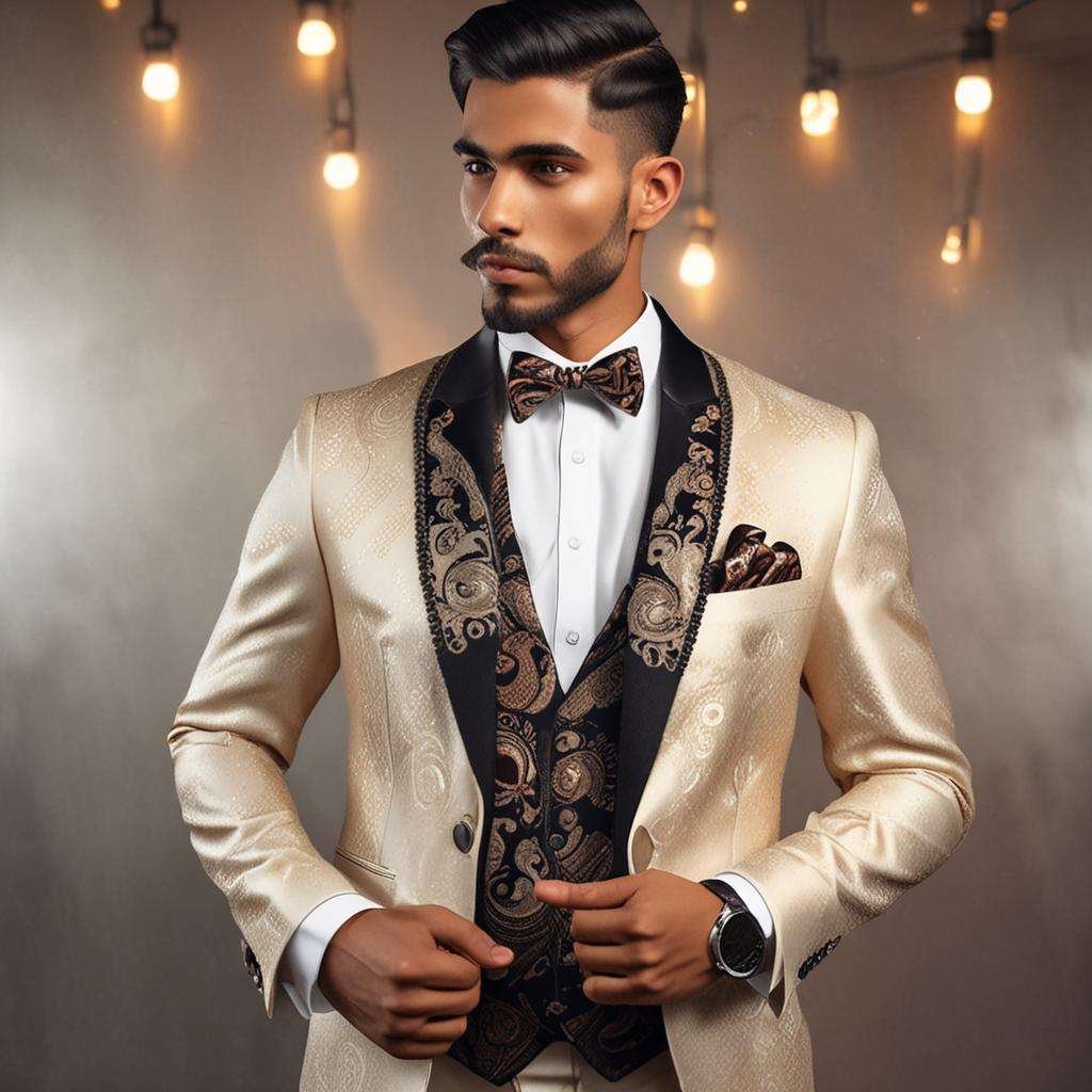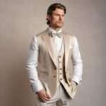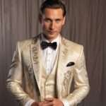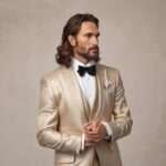 CaposCouture takes pride in offering high-quality, handmade suits tailored specifically to your individual measurements. Our team of skilled artisans pays close attention to every detail, ensuring that each garment is constructed with the utmost care and precision. With our custom tuxedo, you’ll stand out in any crowd with its distinctive cool factor inspired by the iconic Al Capone. The champagne hue of the fabric adds a touch of elegance and refinement to any ensemble, making it the perfect choice for weddings, galas, or any other formal event.