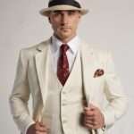 Scott Joplin’s Ivory 3 Piece Wool Suit with Single Breasted Vest
