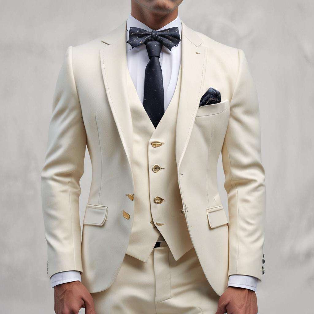 Create your own unique style with our custom made to measure wool ivory cotton suit. Crafted from 100% pure wool, this suit offers a timeless look that exudes class and sophistication.